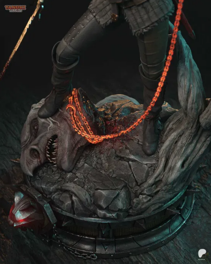 Wysokiej jakości, szczegółowa figurka wydrukowana w rozdzielczości 12K z żywicy Sunluu w kolorze szarym.
