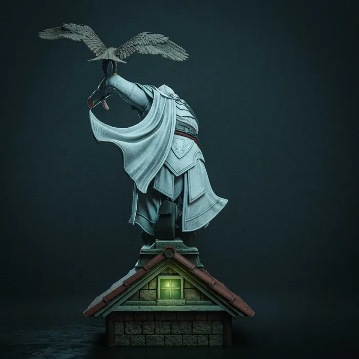 Wysokiej jakości, szczegółowa figurka wydrukowana w rozdzielczości 12K z żywicy Sunluu w kolorze szarym.
