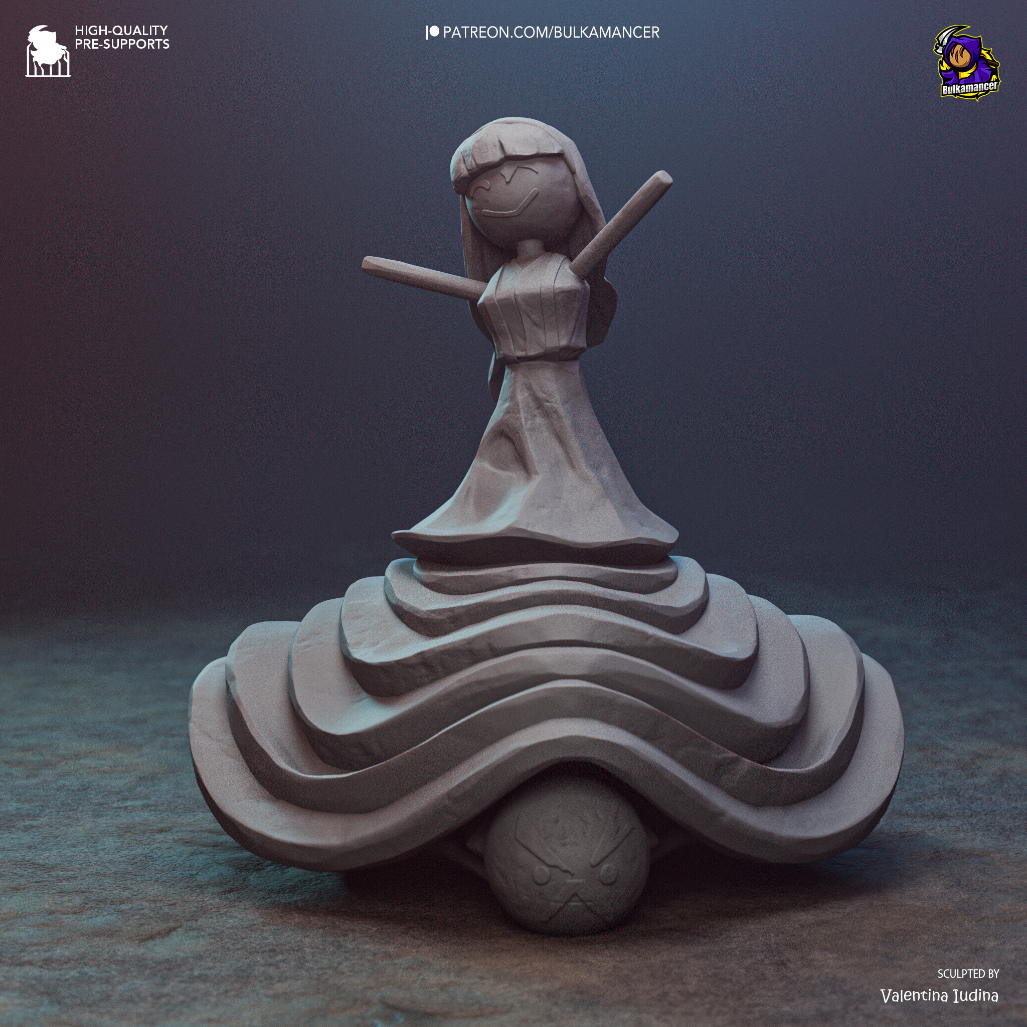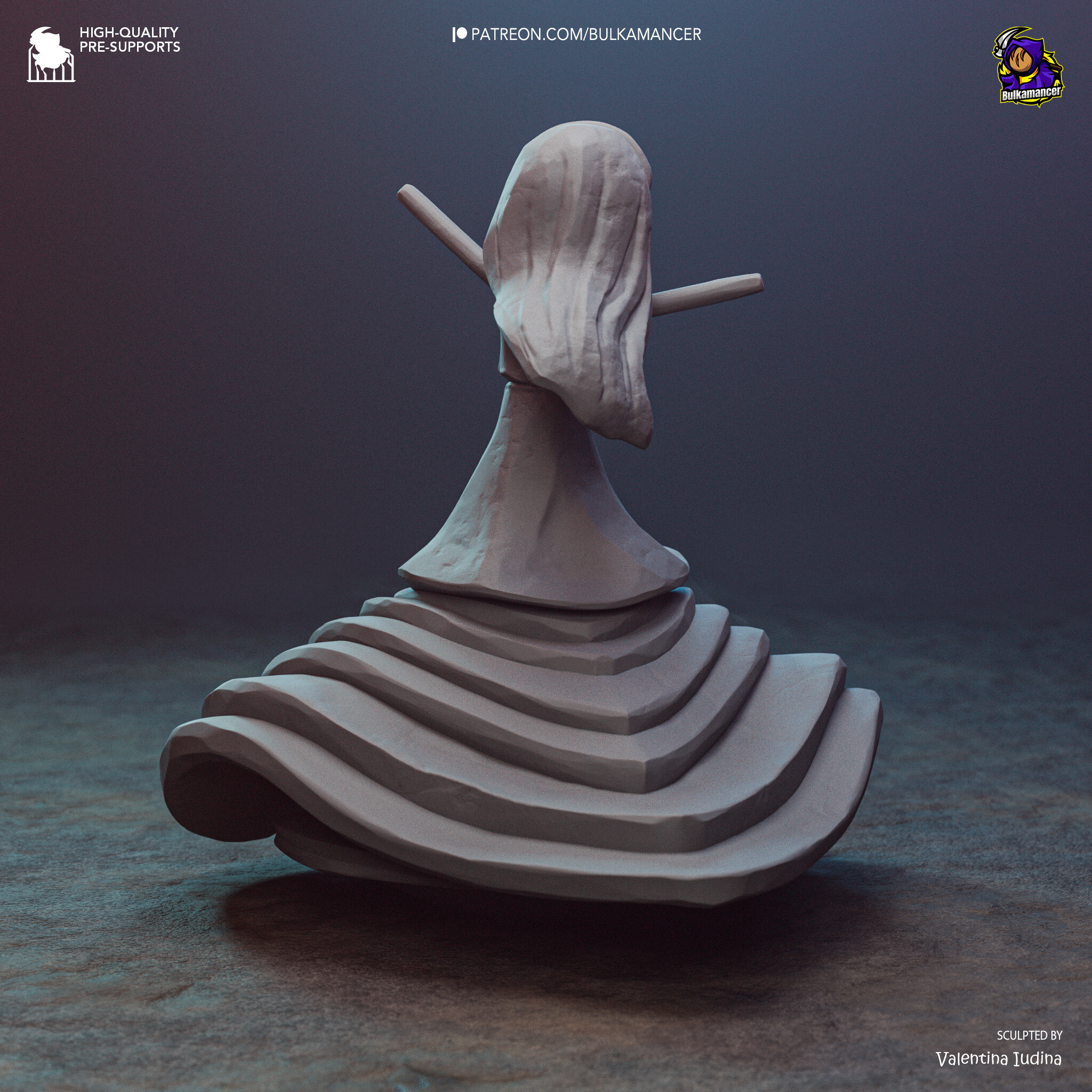 Wysokiej jakości, szczegółowa figurka wydrukowana w rozdzielczości 12K z żywicy Sunluu w kolorze szarym.