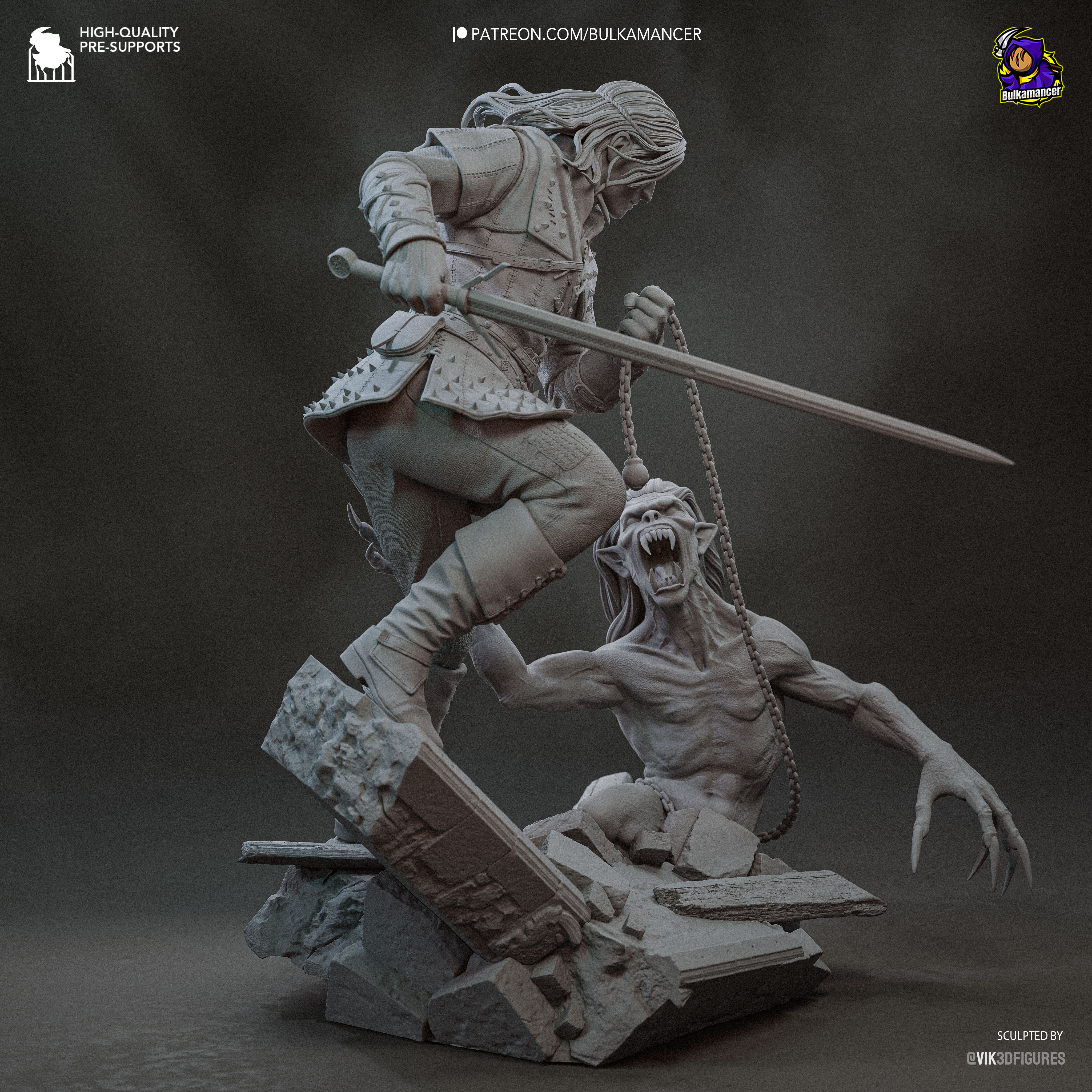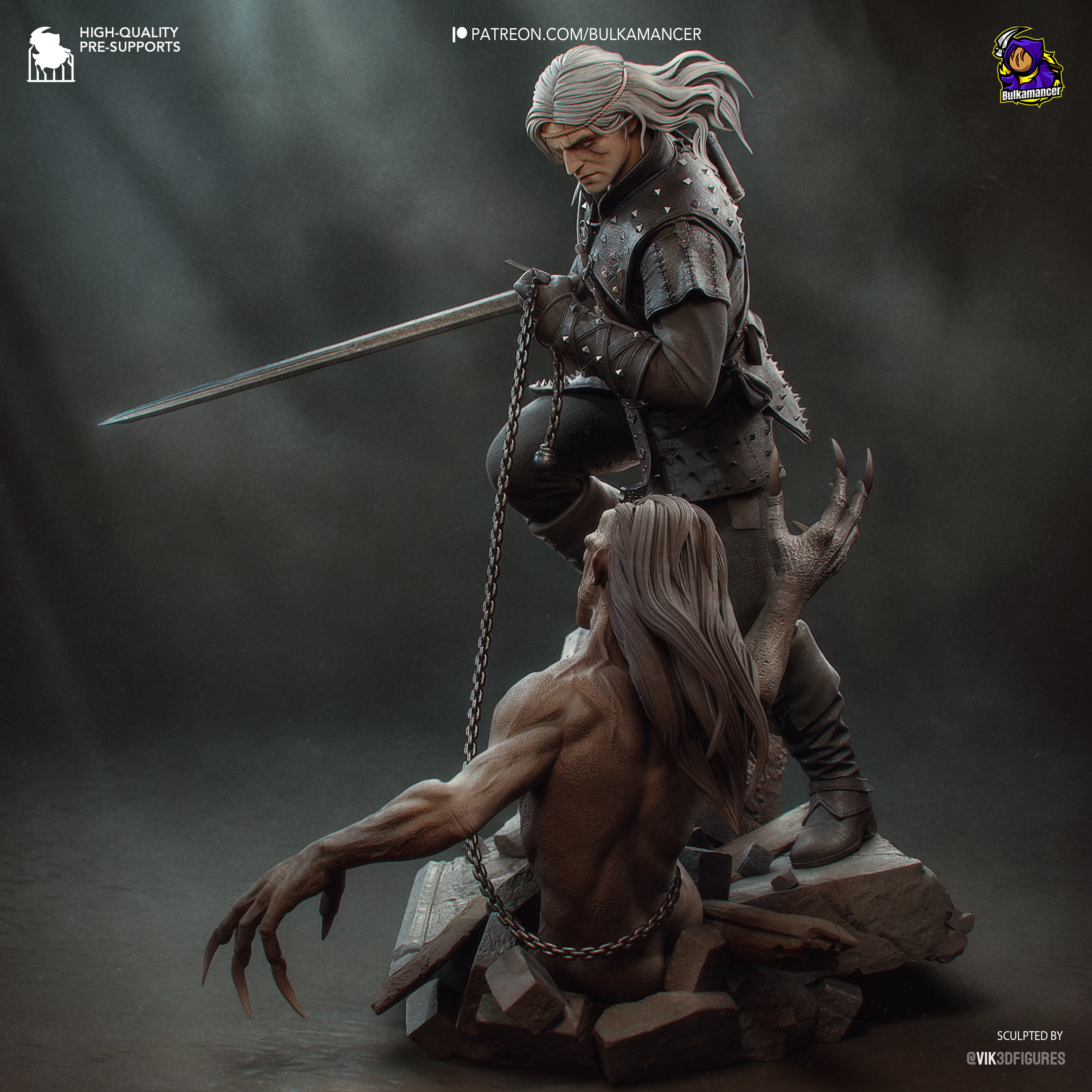 Popularny wiedźmin, wygląd wzięty z książki, nie z gry.