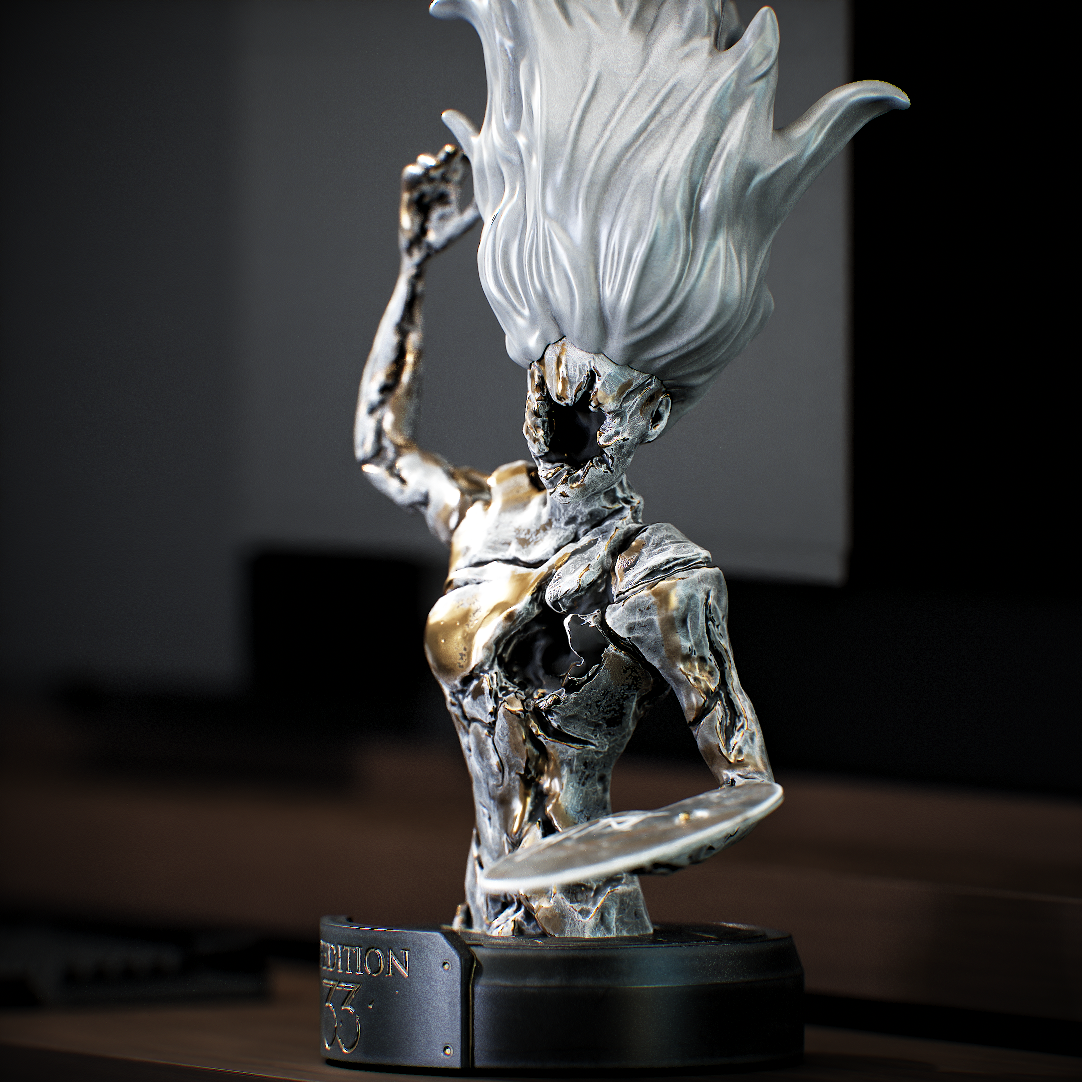 Wysokiej jakości, szczegółowa figurka wydrukowana w rozdzielczości 12K z żywicy Sunluu w kolorze szarym.