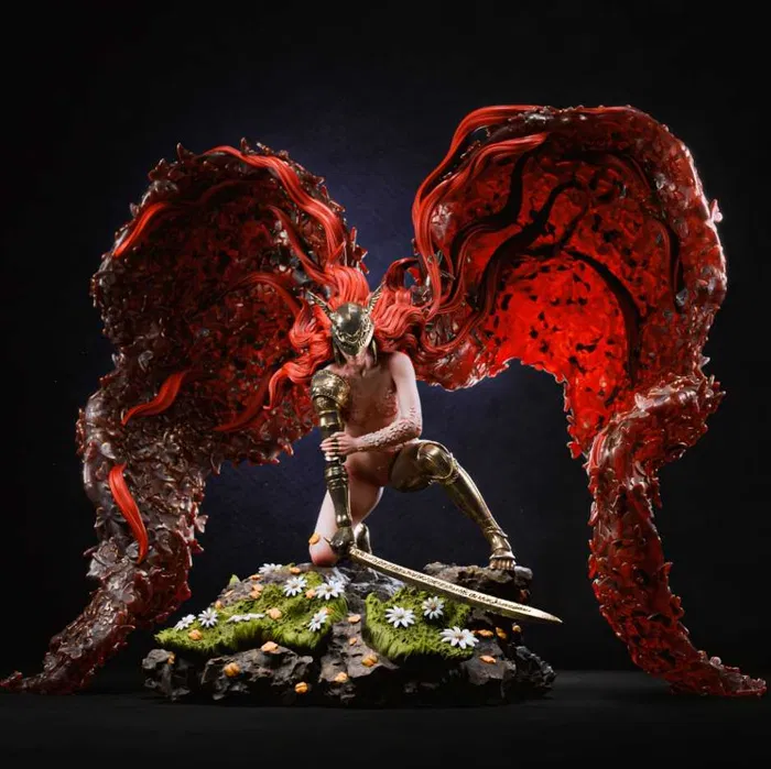 Malenia, Ostrze Miquelli i Malenia, Bogini Zgnilizny to dwufazowy boss półboga w Elden Ring. Jest siostrą bliźniaczką Miquelli z Empireum i zyskała sławę dzięki legendarnej walce z Radahnem, Gwiezdnym Zgnilizną podczas Rozpadu, w której uwolniła moc Szkarłatnej Zgnilizny i obróciła Caelida w ruinę.
