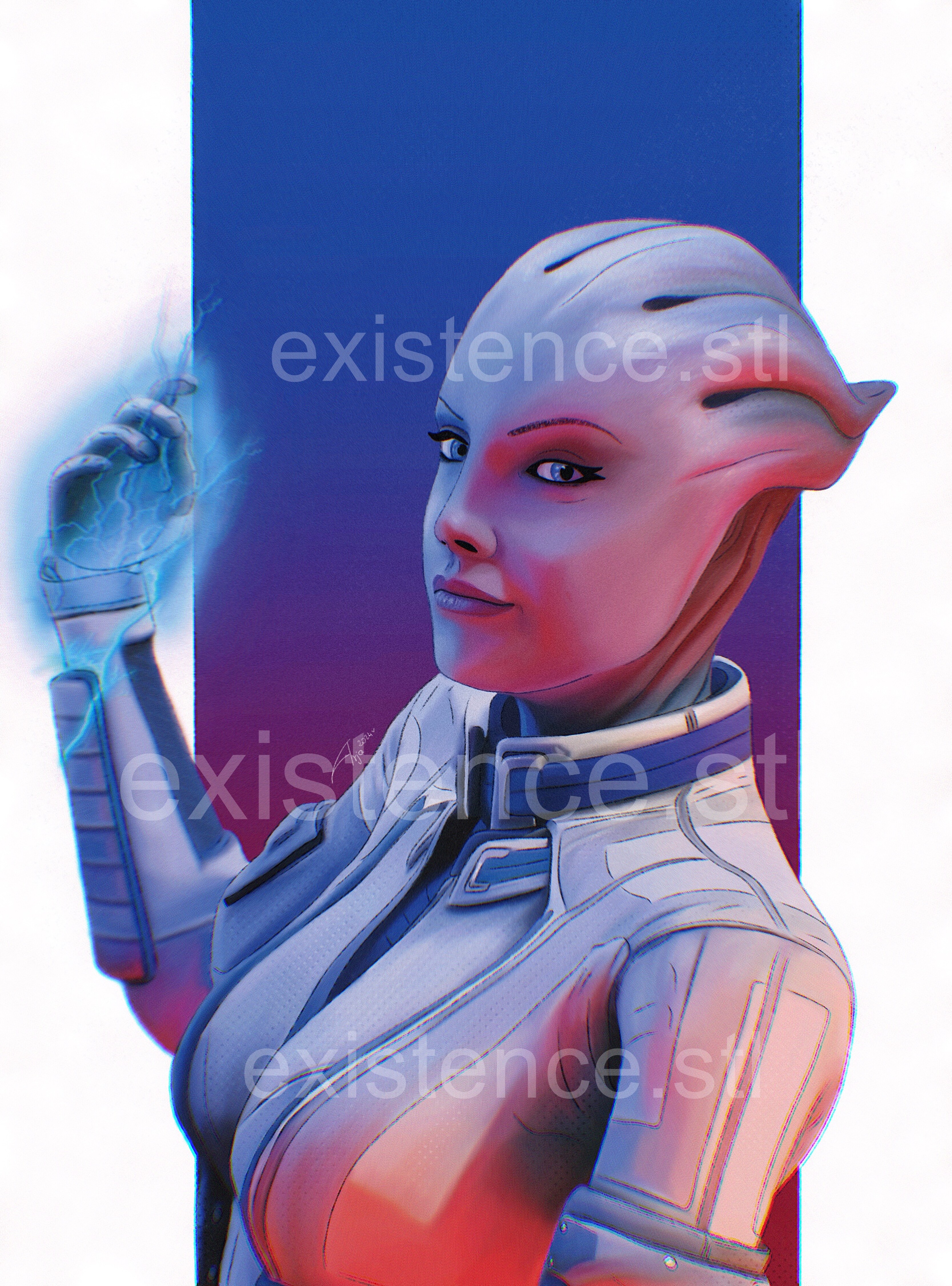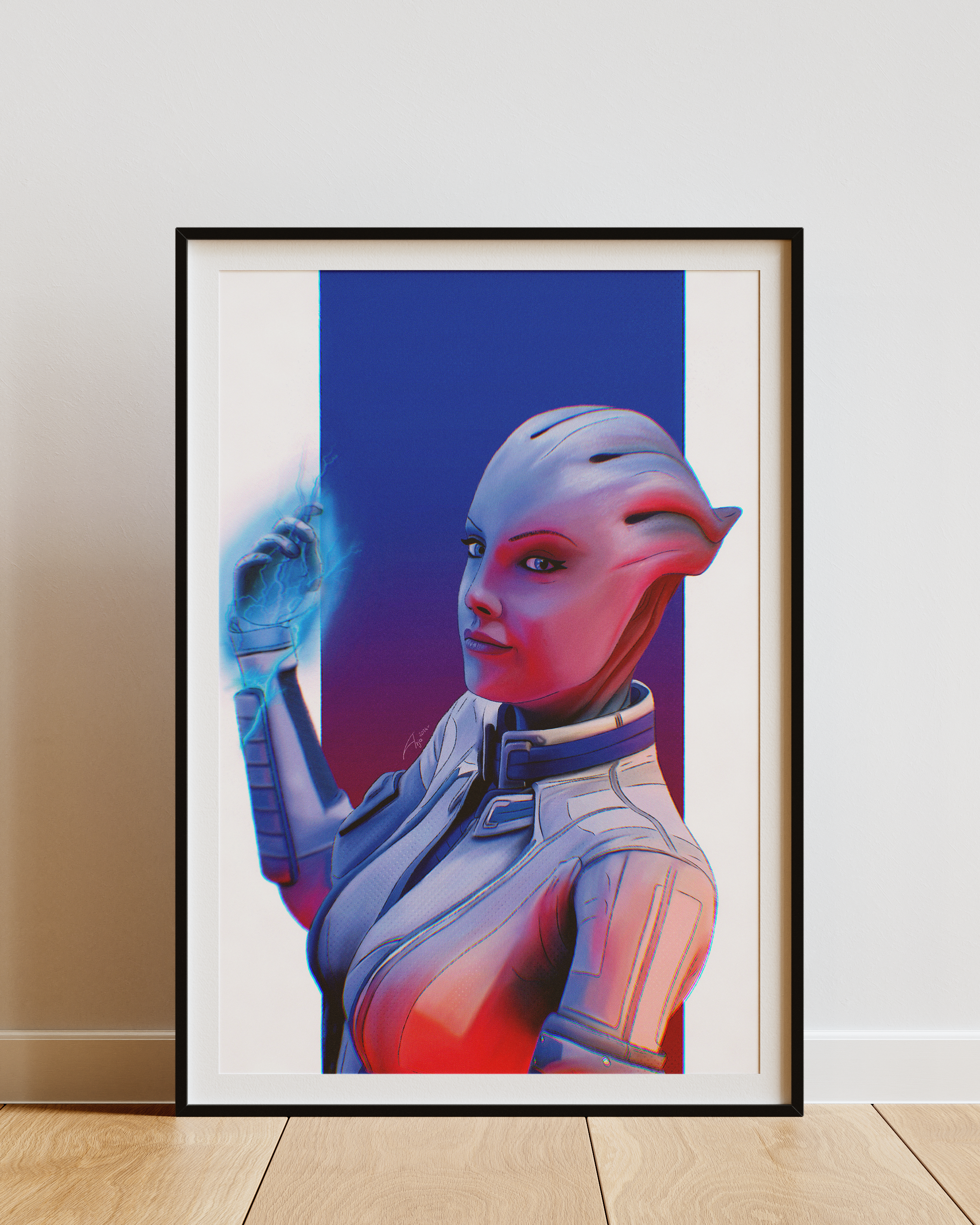 Plakat Liary z Mass Effect narysowany przeze mnie :)