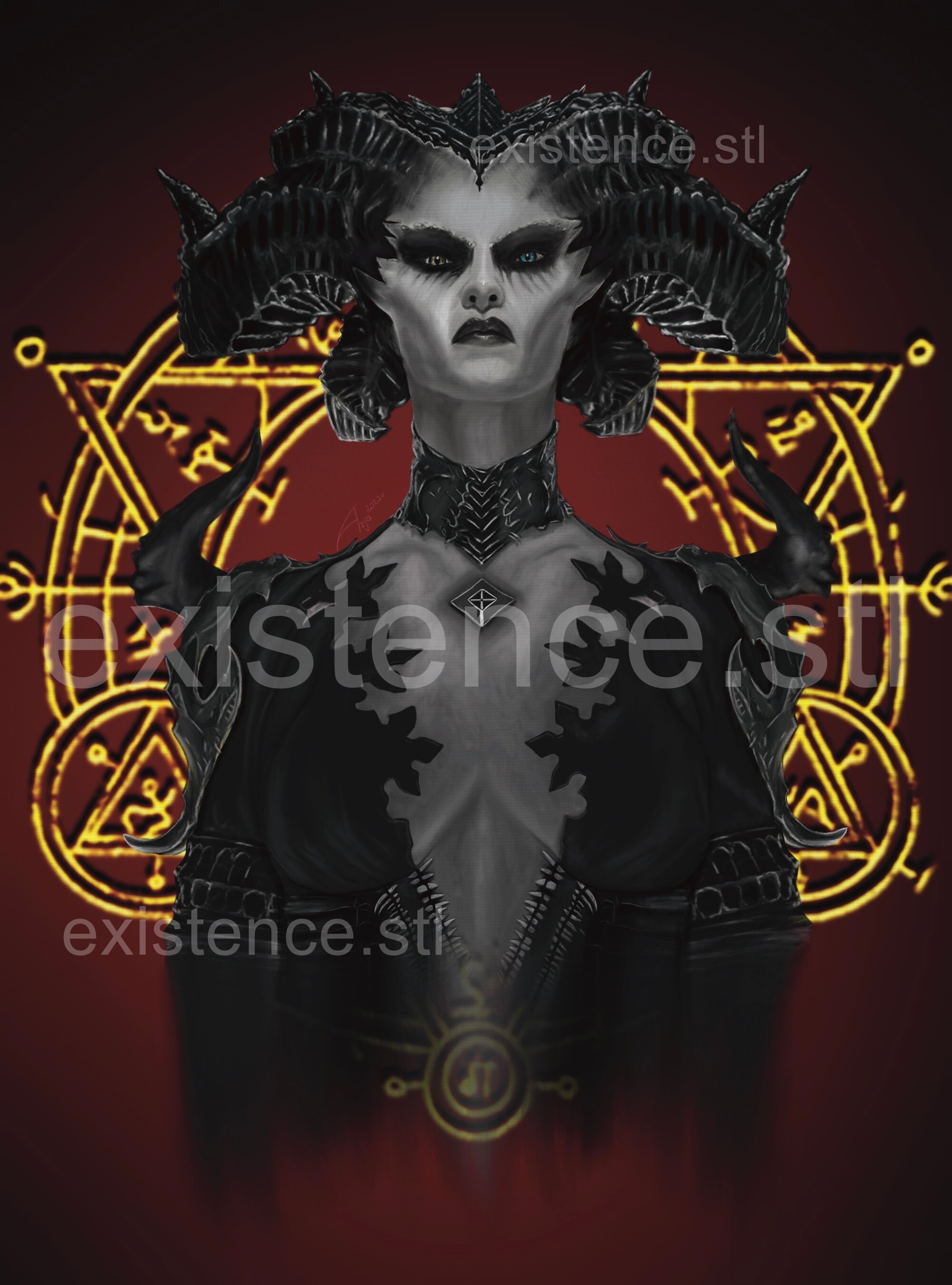 Plakat Lilith z Diablo 4 narysowany przeze mnie :)