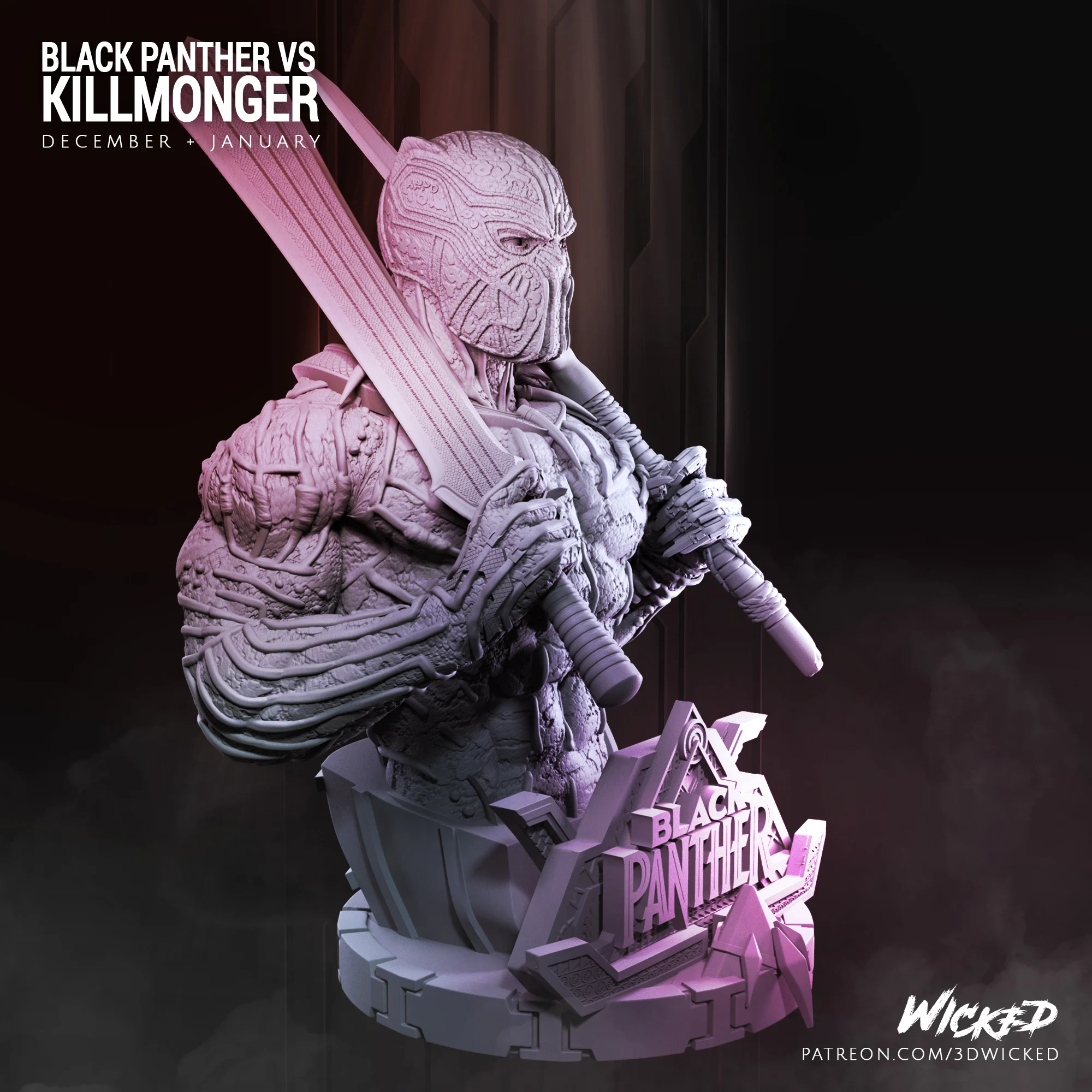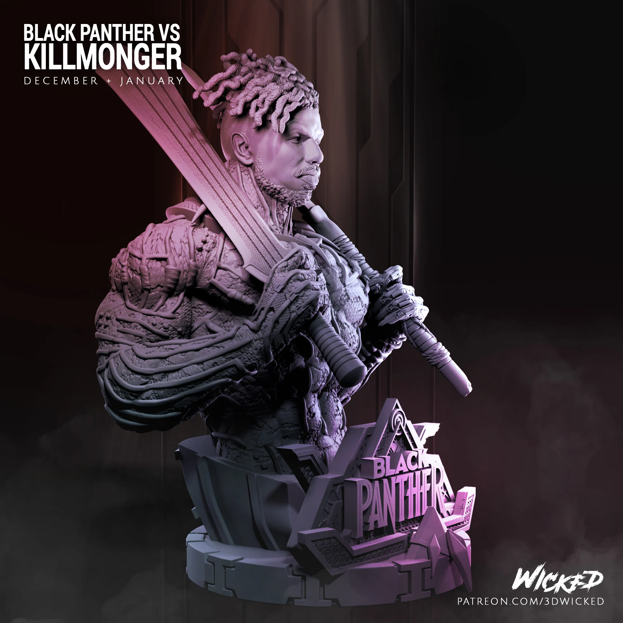 Wysokiej jakości, szczegółowa figurka wydrukowana w rozdzielczości 12K z żywicy Sunluu w kolorze szarym.