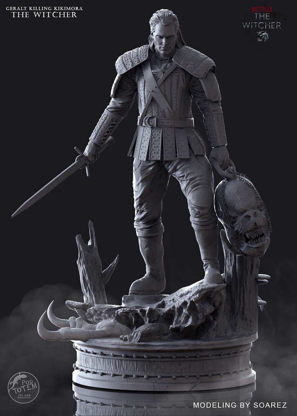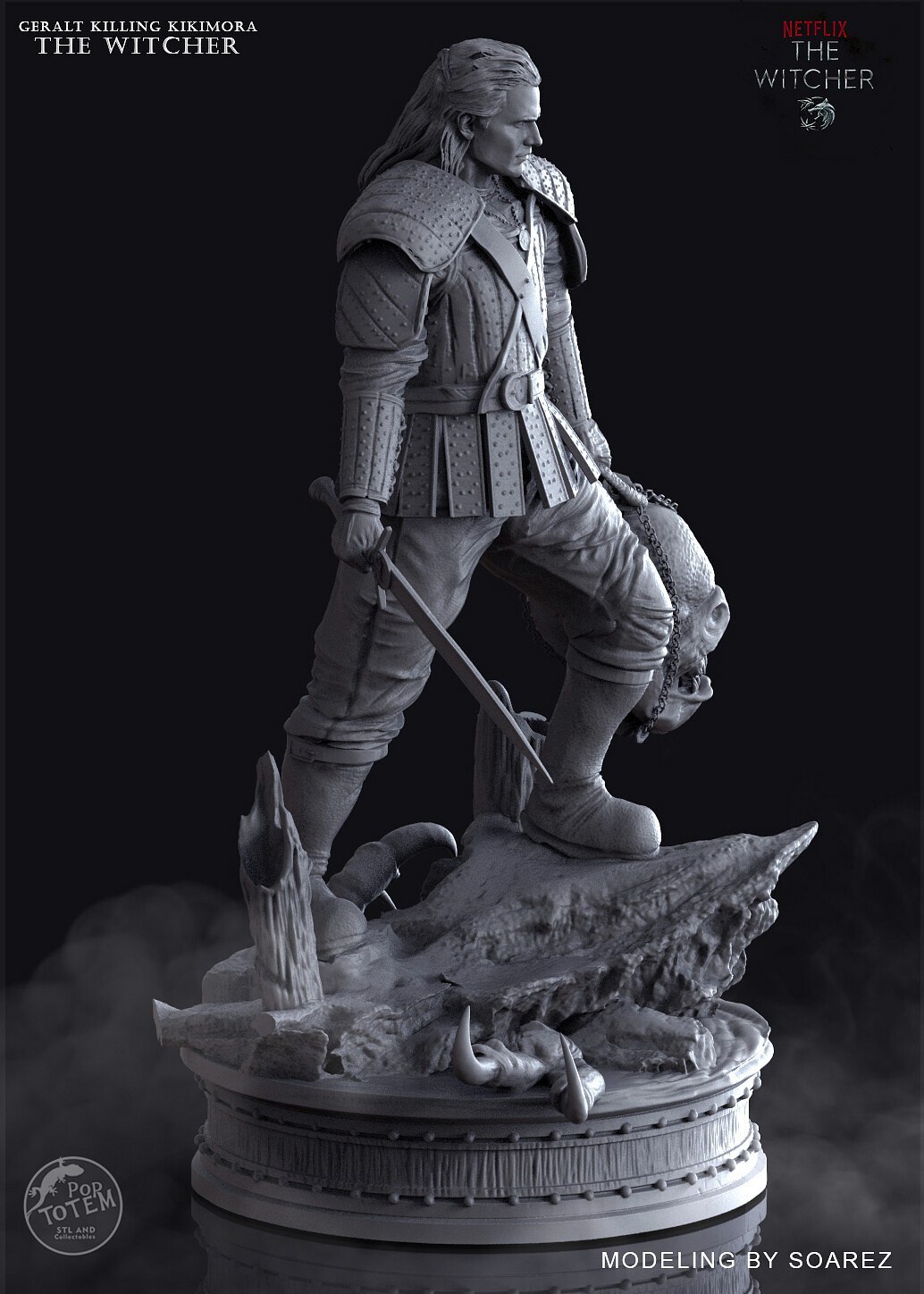 Wysokiej jakości, szczegółowa figurka wydrukowana w rozdzielczości 12K z żywicy Sunluu w kolorze szarym.