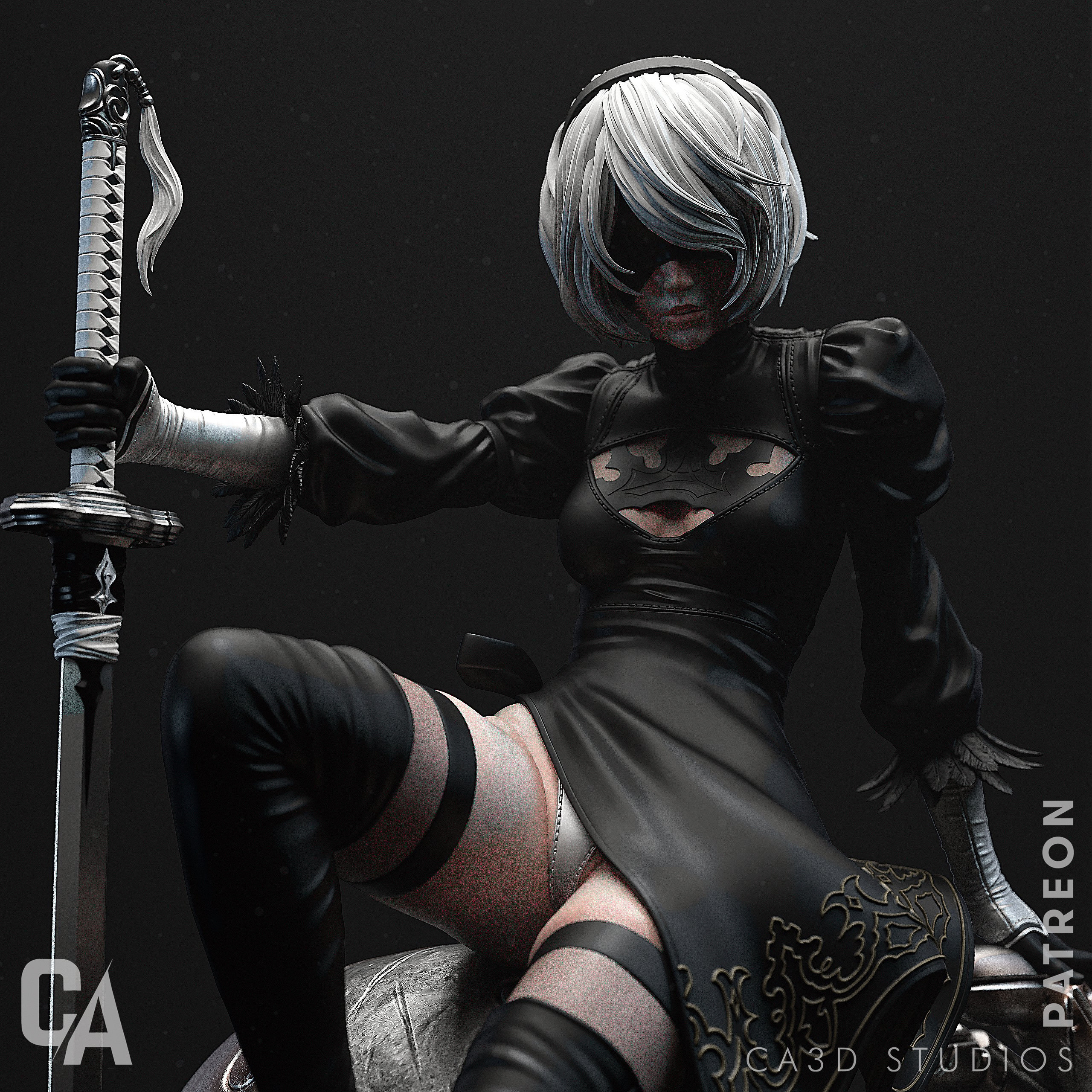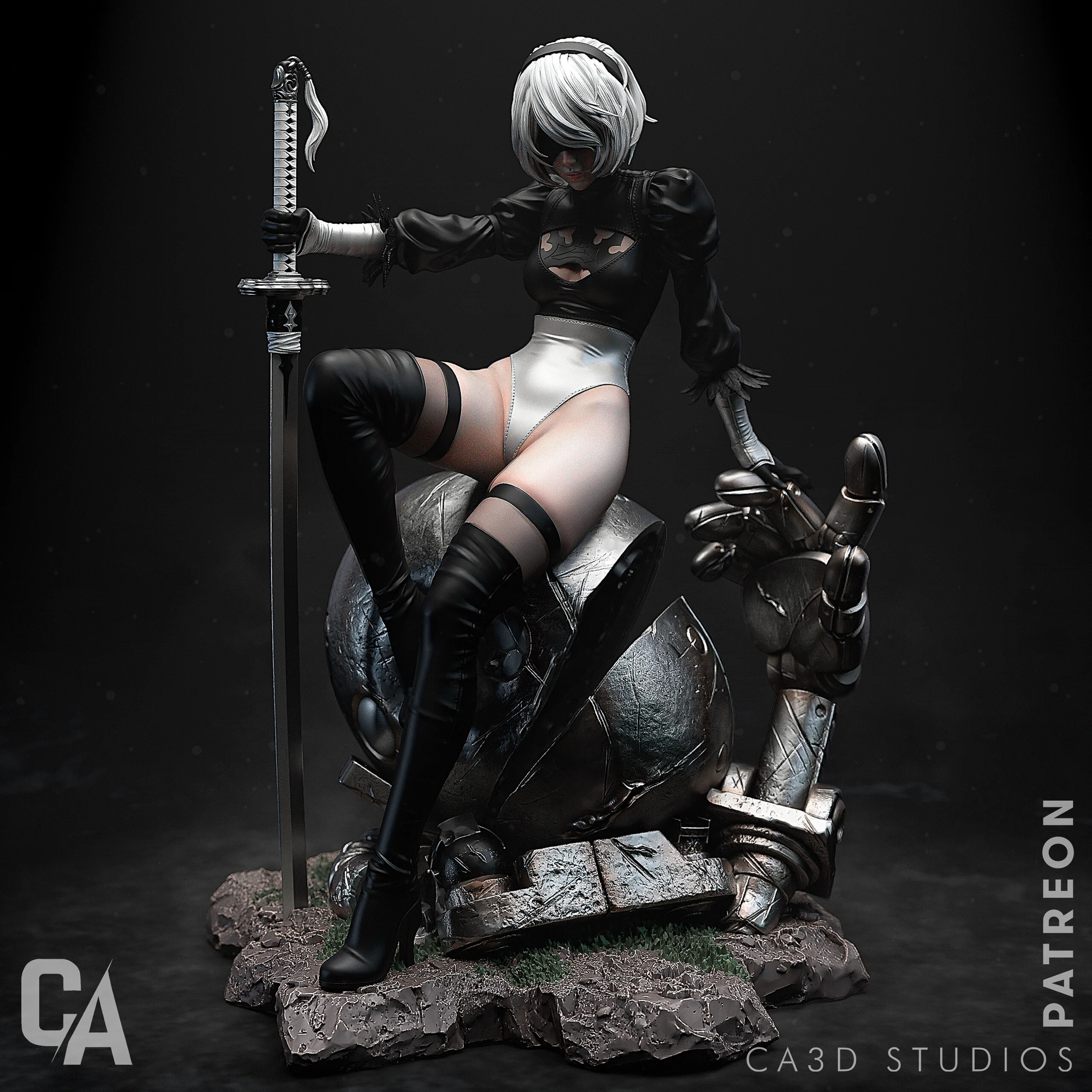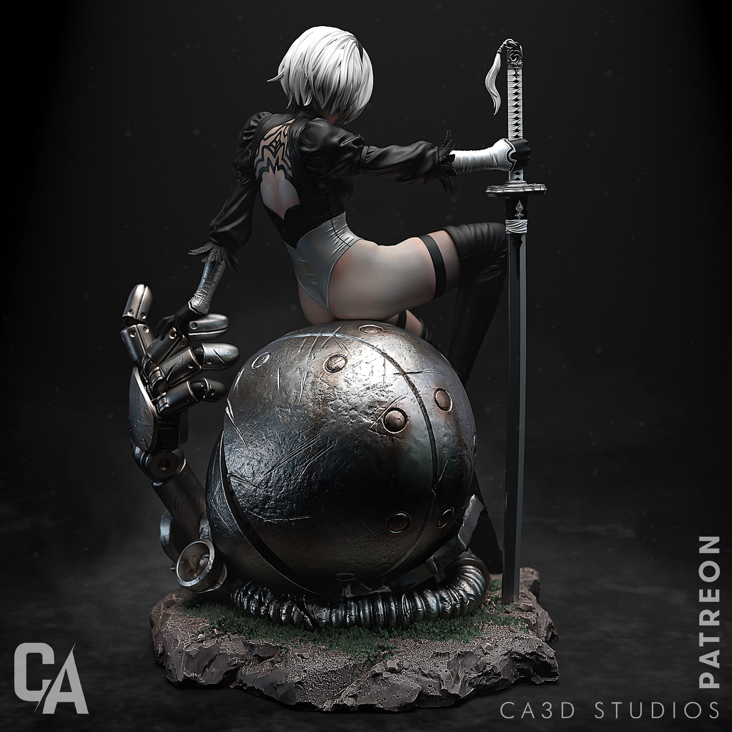 Wysokiej jakości, szczegółowa figurka wydrukowana w rozdzielczości 12K z żywicy Sunluu w kolorze szarym.